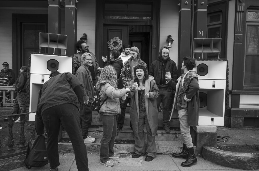 I believe this image is my favorite from the day. While I would have liked to take a few more frames and lower my perspective a bit, I didn’t. This is the best of the two frames I made before being noticed and bruising the scene. I like the arrangement of subjects and the tension on the edges. There is a timelessness to this scene. Multiple generations represented. The children hold wonderful expressions and are neatly dressed. The adults all wear hats. No one but the children notices the camera. One could wonder what these people were discussing, what the relationships were, what was happening here. This, to me, harkens to an earlier time when families sat on stoops and lived life outdoors.
