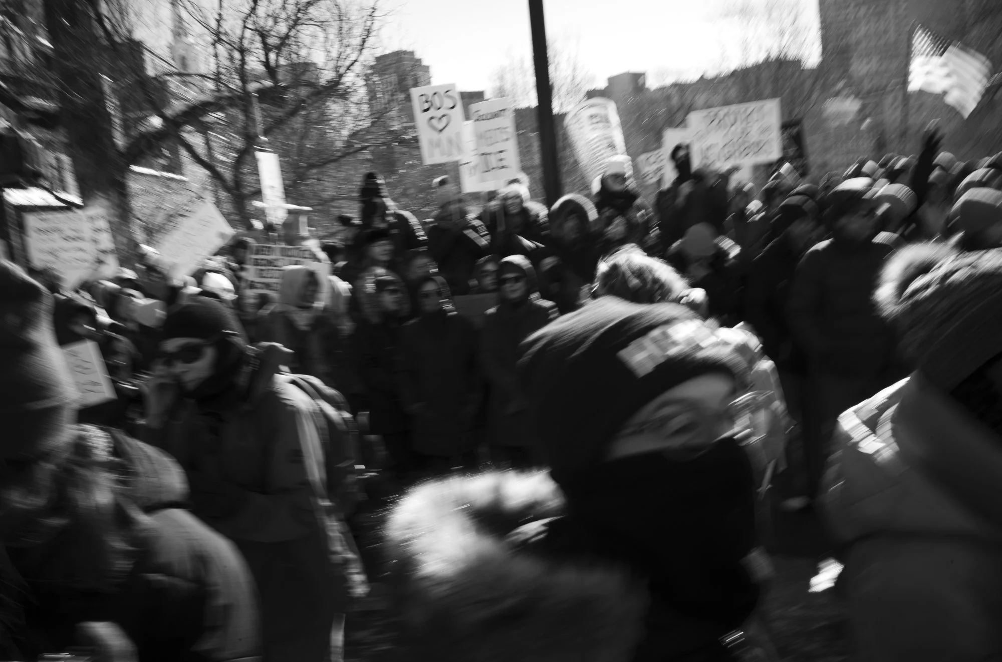 Given the urgency of today’s politics, it seems appropriate to record these actions if, for nothing else, to bear witness. In the face of rising fears about voicing dissent (a scary topic deserving its own attention and one I will not address here), it seems appropriate to protect protesters' identities while capturing the spirit of the protest. I have seen examples of protest images that use techniques to ‘deidentity’ subjects. While photographing at a recent protest, I slowed the shutter to 1/30, closed the aperture to f16, and moved the camera during the exposure to purposely blur the frame.